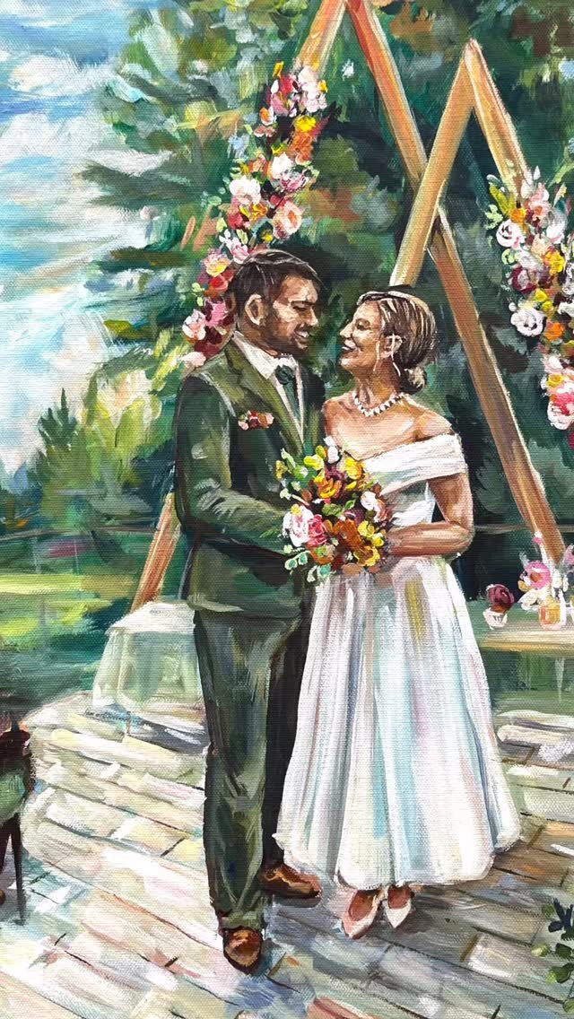 Thank you very much for your surprising and amazing gift 💝! We’re very happy that we and our special day were documented in a nice painting by you! 🥰 when we have more time, we‘ll make the frame for the paining and we‘ll definitely recommend you and your Service to our Friends!